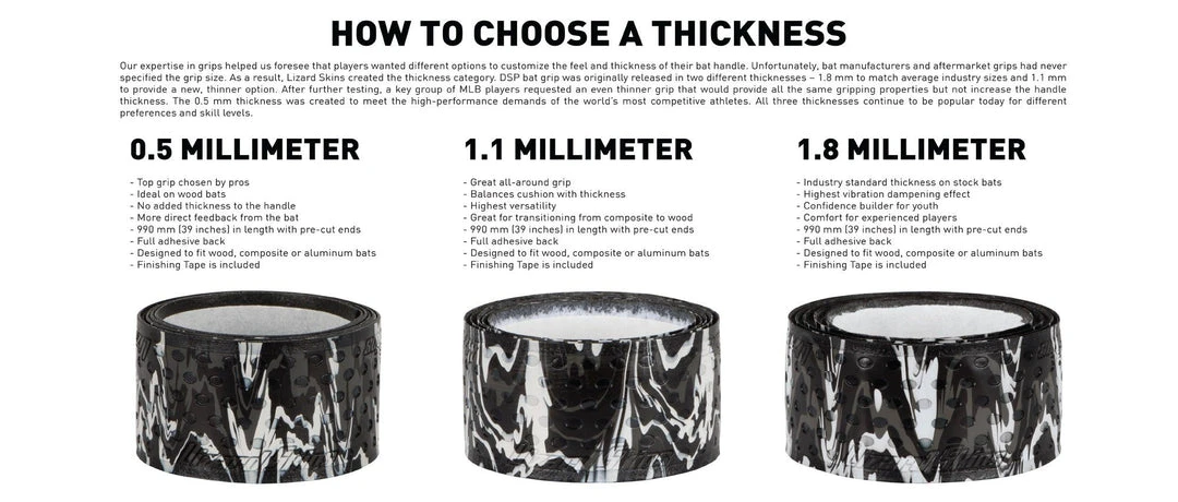 Experience the best in bat wrap: DSP has excellent durability, increased shock absorption, and great feel in all conditions.