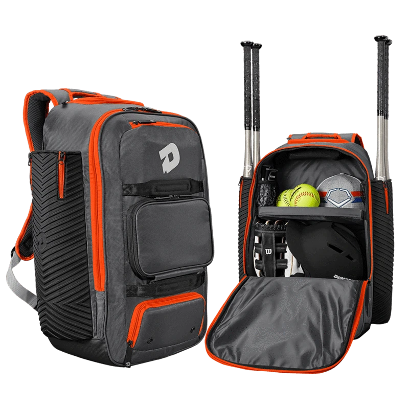 You’re a serious ball player – and need a bag to match that commitment. The all-new Special Ops Spectre Backpack from DeMarini has an extra large main compartment that fits a helmet, glove and gear. Take all your sticks with you in four neoprene bat sleeves. A cell phone pocket, vented shoe compartment and interior shelf help you stay organized and keep your focus where it should be – on the game.