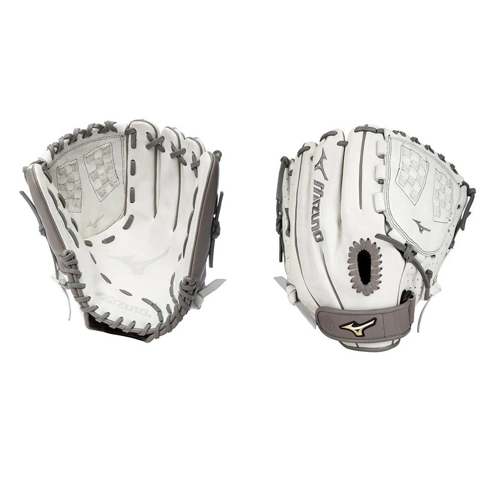 The new Mizuno Prime Elite series is crafted with soft, smooth, white and grey colored leather that is durable with a premium feel. Featuring an UltraSoft Pro Palm Liner for a soft feel and finish. A perforated thumb and pinky panel design reduces weight and increases breathability. Created with Finger Core technology, which is a new finger stall shape that helps improve flexibility and control when making a tough play, while also providing a more comfortable option for players who prefer to shift their ring finger to the pinky slot. Designed with Fastpitch patterns to make Prime Elite an excellent glove choice for serious players wanting to compete at their highest level on the field.
